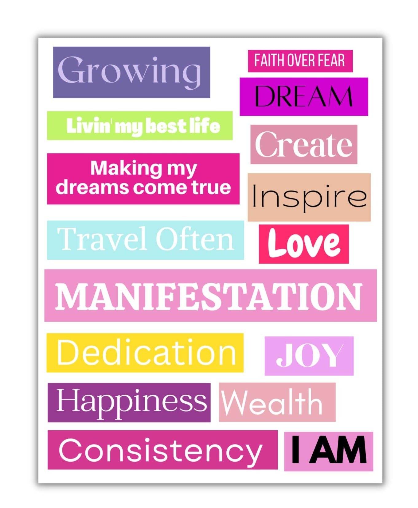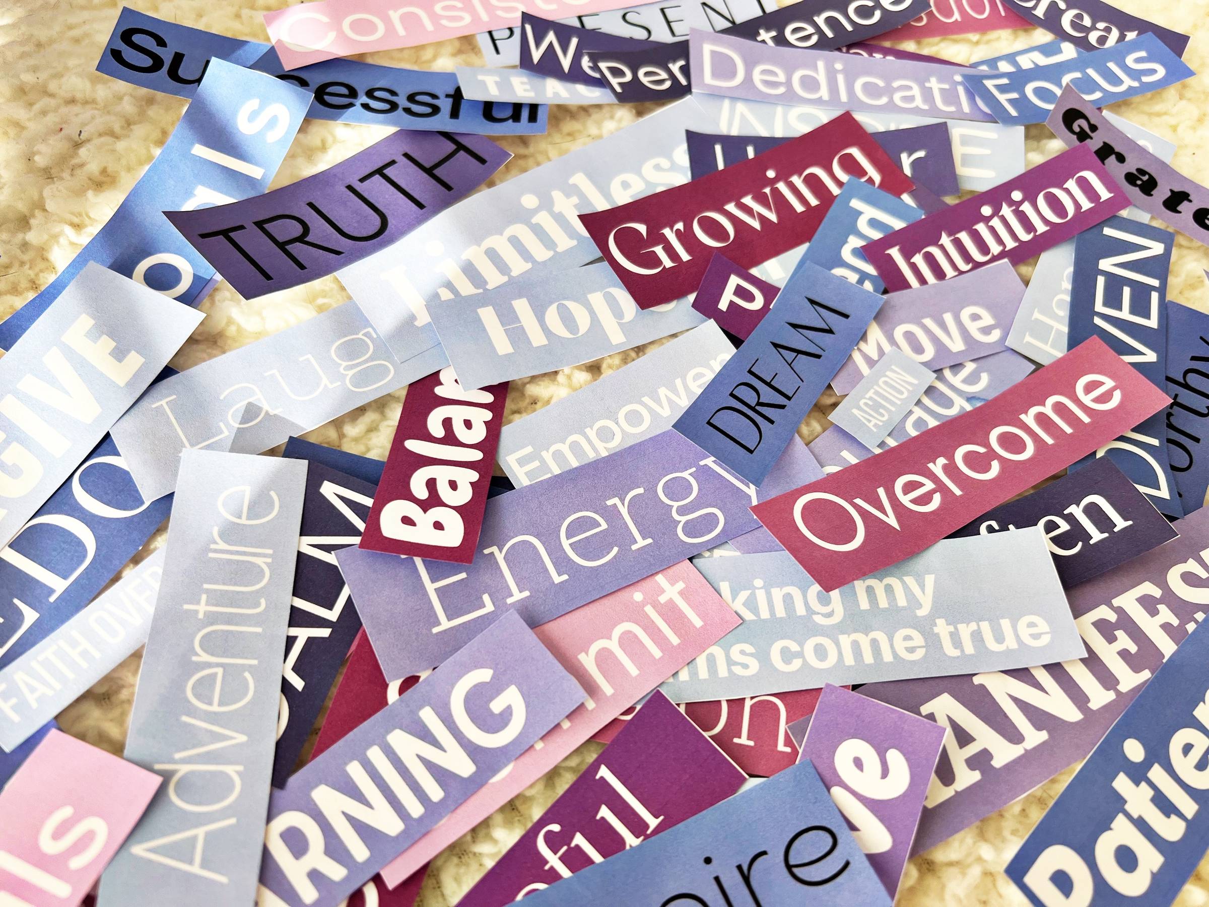 We are excited to offer you a free sample of our magazine words from our vision board kits. With our kits, you can create a visual representation of your goals and dreams, helping you to manifest them into reality. Our high-quality images will inspire you to manifest your goals and desires.